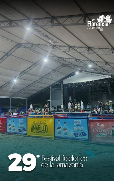 Florencia Alumbra se unió al 29° Festival Folclórico de la Amazonía, iluminando el Instituto de Desarrollo de la Amazonía (IDEMA), escenario principal de este importante evento cultural.